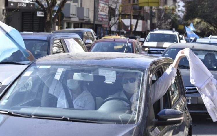 El inicio de las protestas en Córdoba se remonta a mayo, cuando distintas agrupaciones de salud, entre ellas, Médicos Autoconvocados de Córdoba (MAC), pero también la Asociación de Auditoría y Calidad de Atención Médica, el Círculo Médico y el Consejo de Médicos, extendieron sus reclamos vinculados a mejores salariales y laborales, que fueron oídos cuando los contagios fueron aumentando.